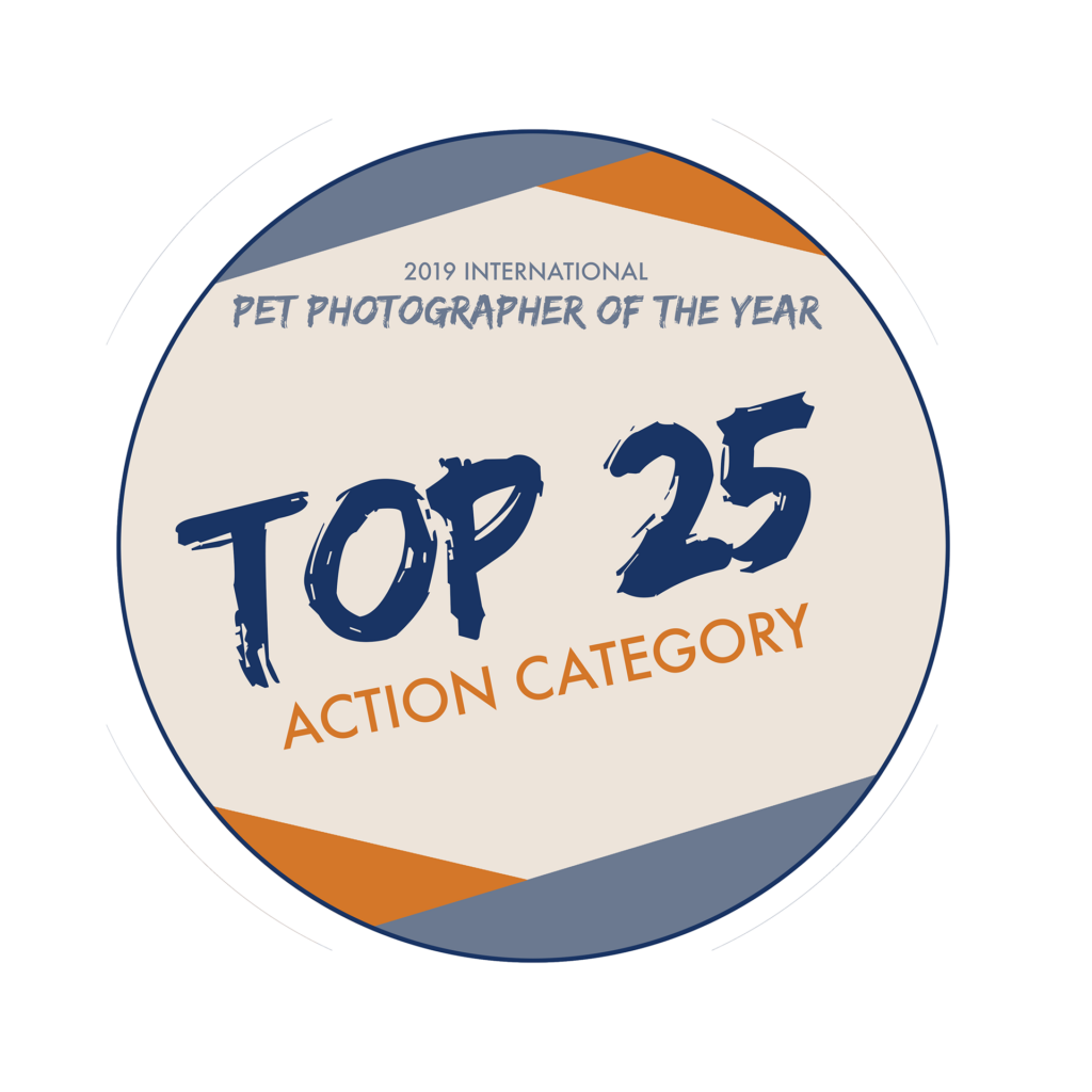 De foto onder de badge heeft mij een plaats gegeven in de internationale fotowedstrijd “pet photographer of the year.” De categorie was actie.